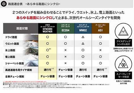 SYNCHRO WETHERは、路面状態に合わせてタイや自らが適した性能に変化する、