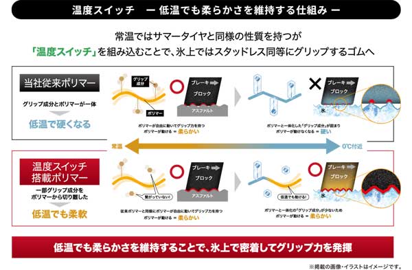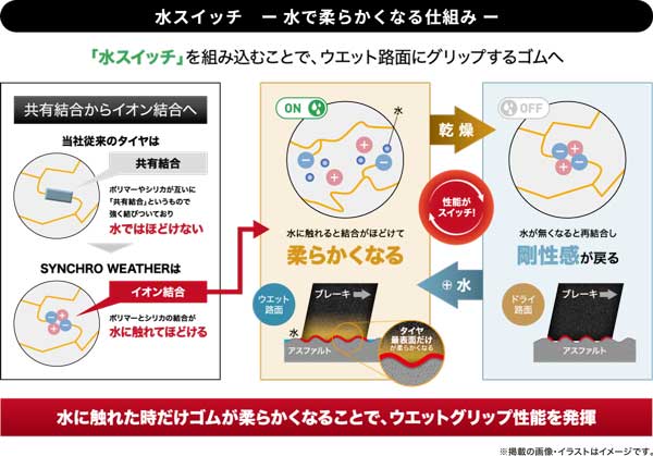SYNCHRO WETHERは、路面状態に合わせてタイや自らが適した性能に変化する、